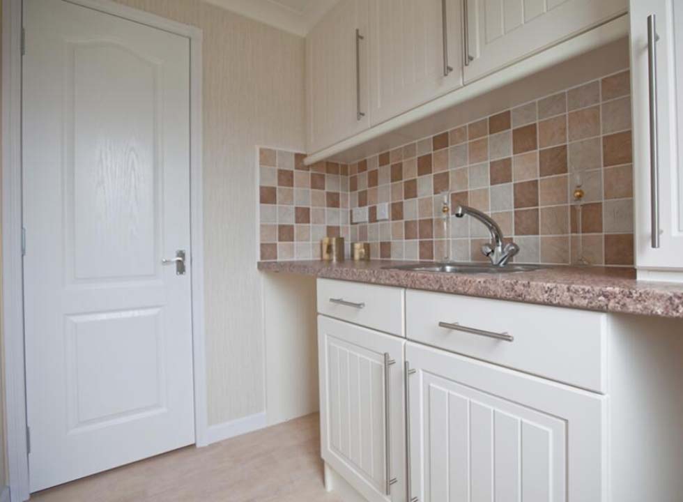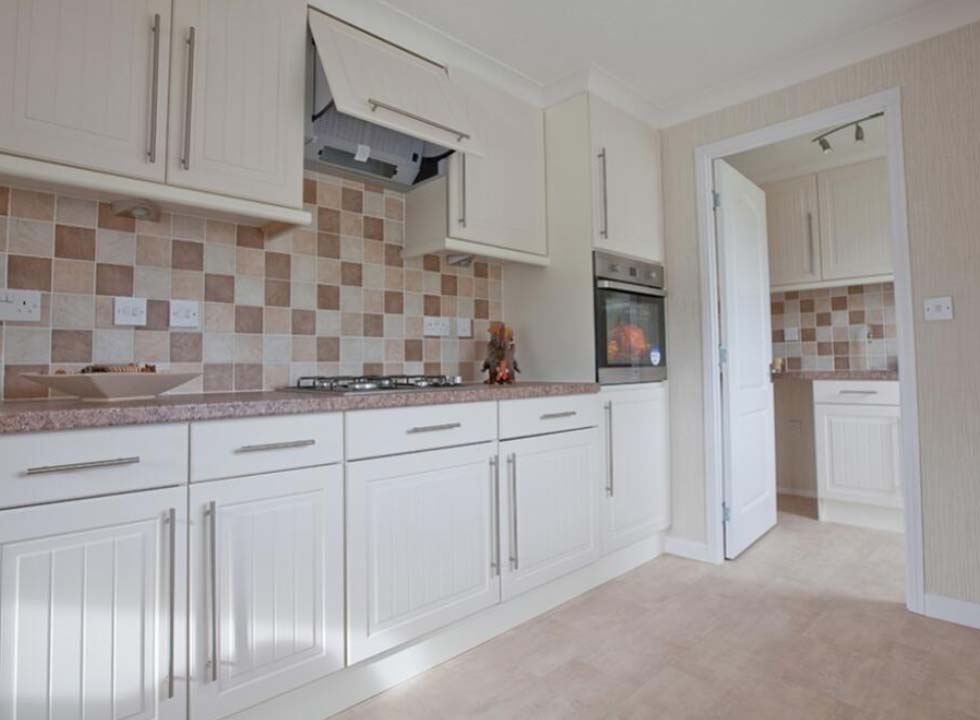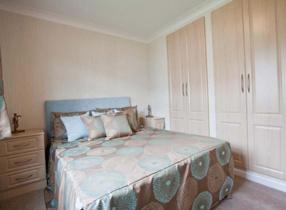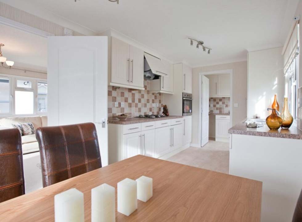 The kitchen takes the practical Tredegar park home design, but adds, tiling from the worktop to the underside of the top lockers, the option of high-gloss doors, integrated fridge/freezer, washing machine and dishwasher. The bedroom furniture has also been upgraded.