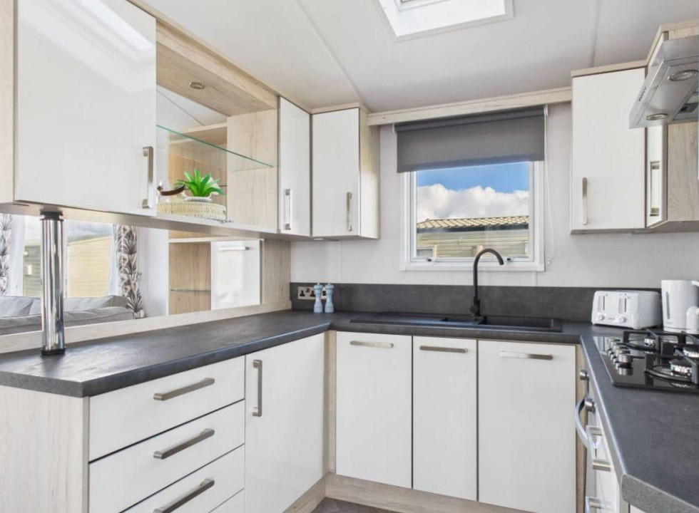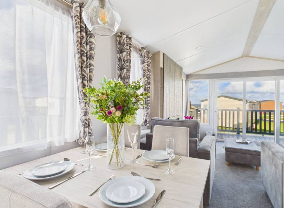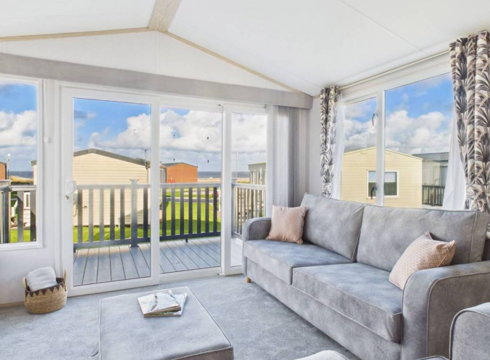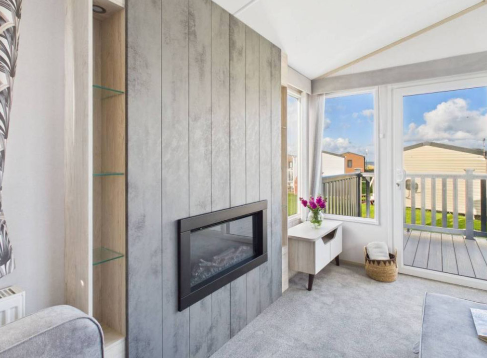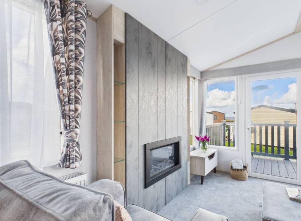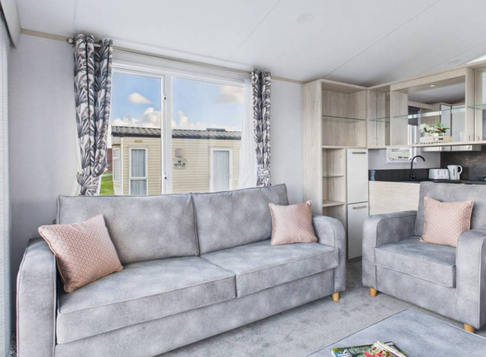 Introducing the 2025 Atlas Image, a luxury home that combines elegant design with contemporary comfort. From the moment you step inside, you’ll be impressed by its modern styling and premium finishes, including graphite PVC double-glazing and a sleek, open-plan layout that’s both bright and inviting. The lounge features a brushed metallic feature wall and a modern fireplace, creating a warm and welcoming space to relax. Freestanding sofas and armchairs with a matching footstool make it easy to unwind while enjoying views through the large front windows and patio doors, which open onto the coastal breeze and stunning seaside scenery.