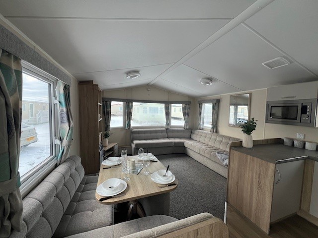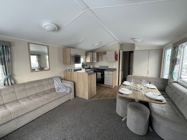 The open plan space is perfect for weekend breaks and family holidays. The large and practical kitchen has bags of handy storage. This Caravan price is for fully sited on Seabreeze Holiday Park