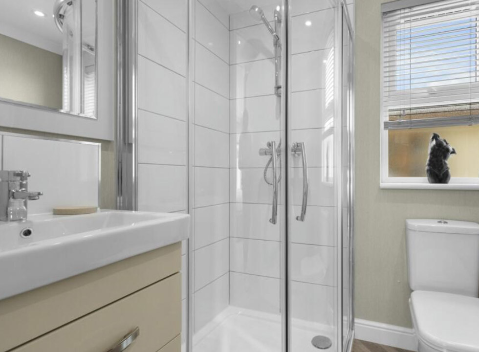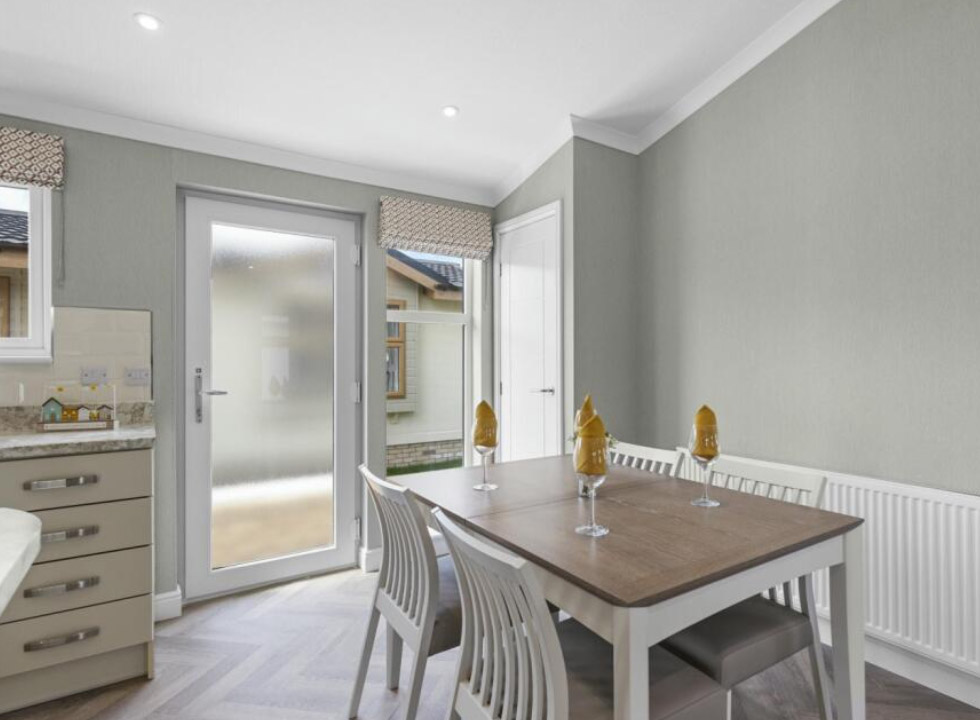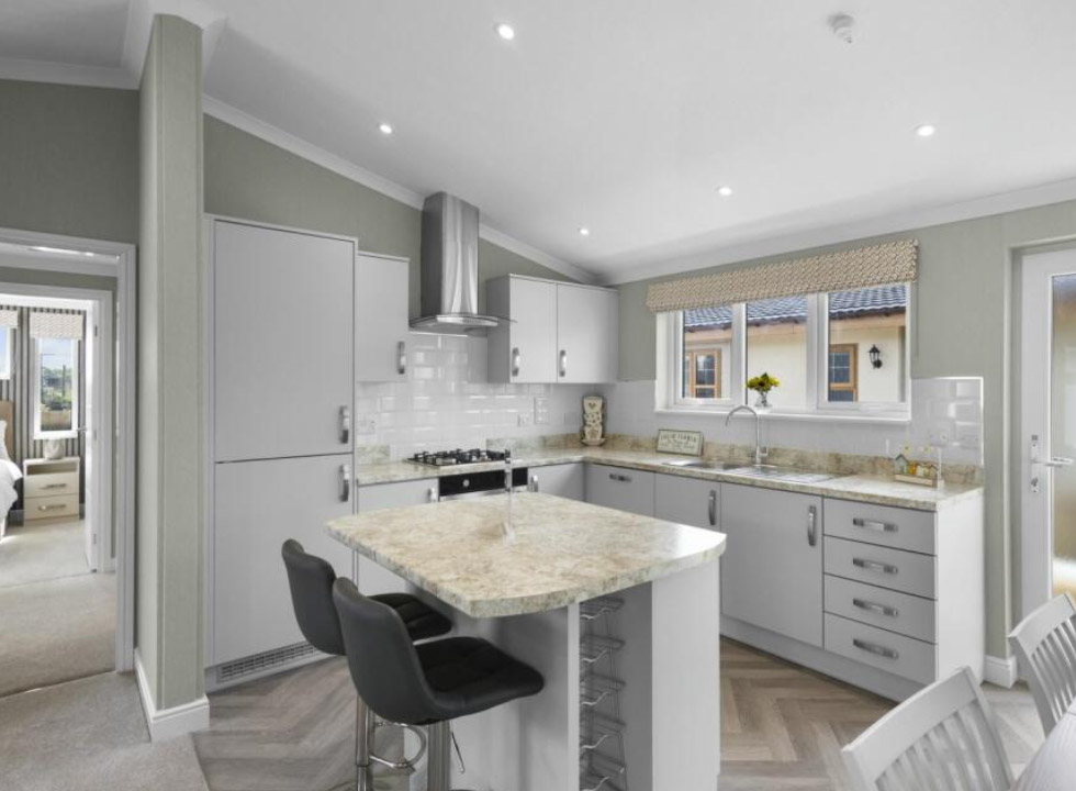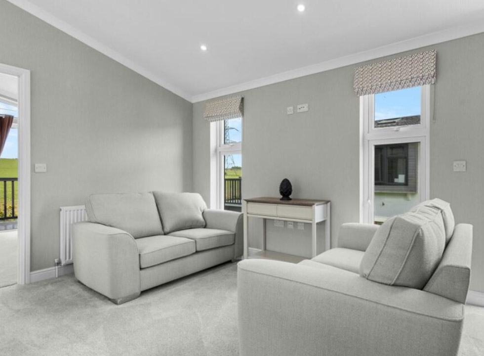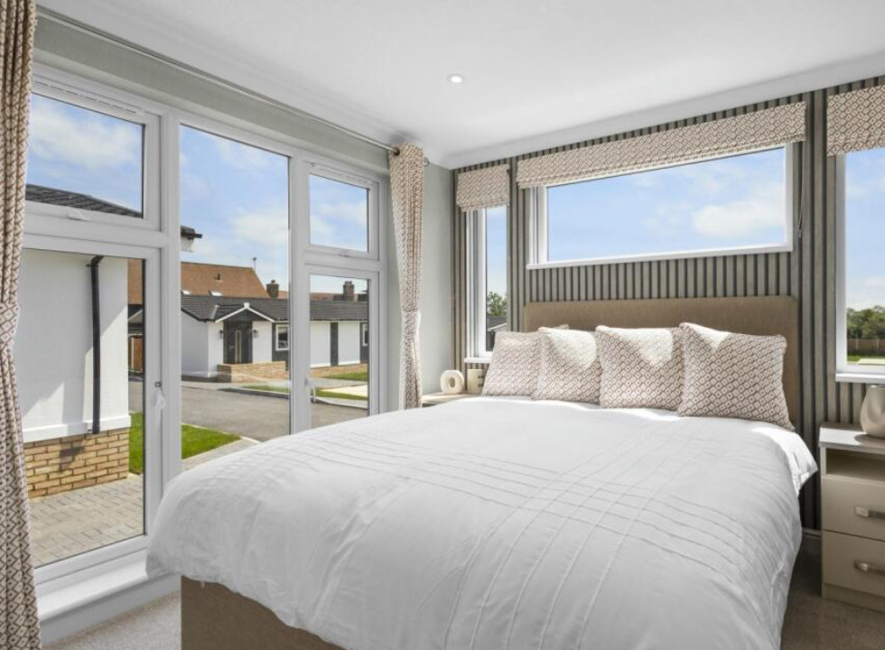 The Omar Vision park home is an exceptional choice for those seeking luxurious, modern living within a peaceful and vibrant community. With a distinctive exterior featuring top to bottom windows for maximum natural light and elegant cladding, this park home exudes curb appeal.